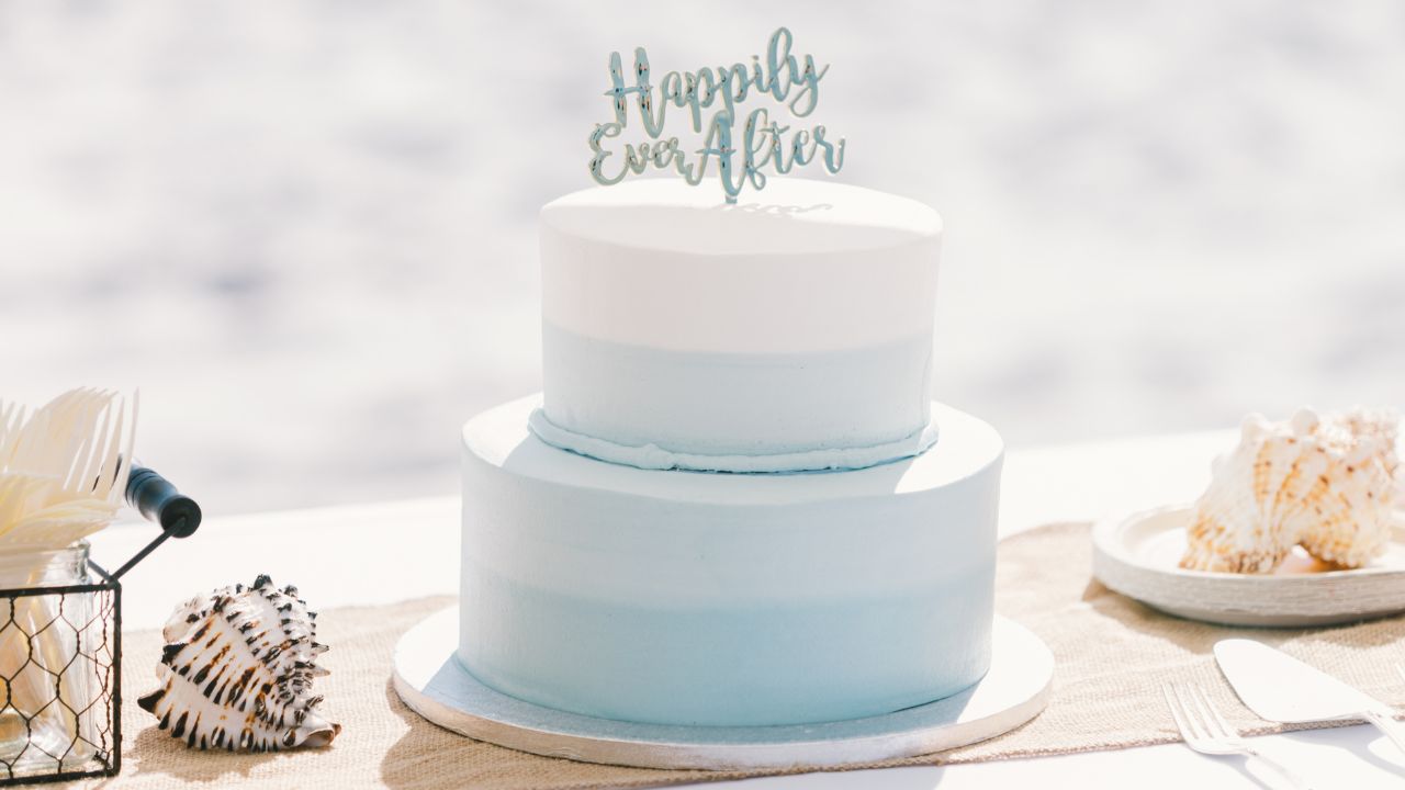 O bolo, além de delicioso, é um dos grandes destaques visuais da festa. Para seguir a paleta serenity, aposte em um efeito degradê que transita do branco ao azul, criando uma aparência suave e artística.