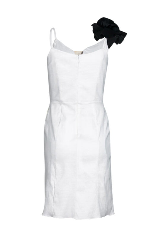 Outra opção de vestido preto e branco é o Vestido Curto com Flor Lily. O contraste entre o branco e o preto cria um visual elegante e atemporal, enquanto a flor aplicada na lateral do vestido adiciona um detalhe delicado e romântico.