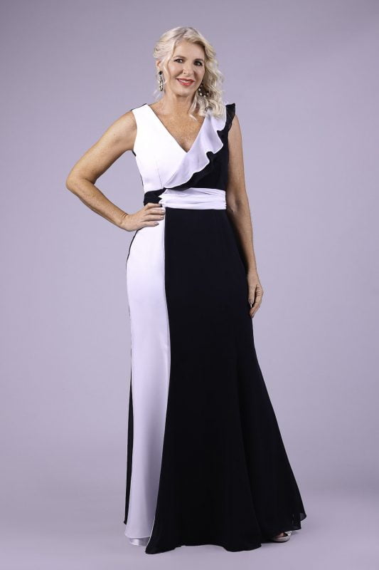 5. Vestido de Gala Branco e Preto Lari Montanheiro