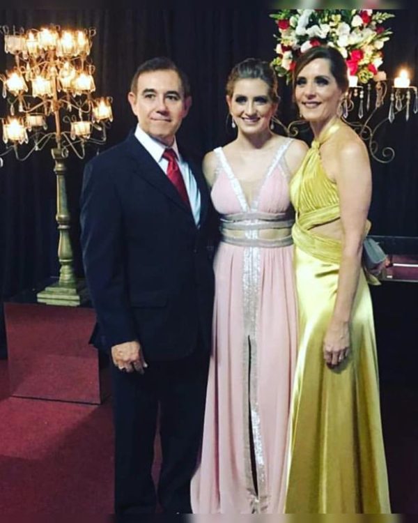 Use o cabelo totalmente solto, não exagere muito nos acessórios e não esqueça que os mesmos devem combinar com a cor do vestido. A cor do salto pode ser um nude, preto.