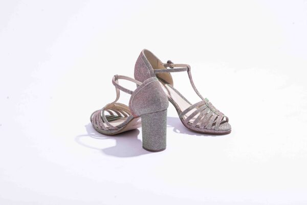 Sapato Best sequel nude furta-cor, de couro forrado, com tiras e salto de 8cm.