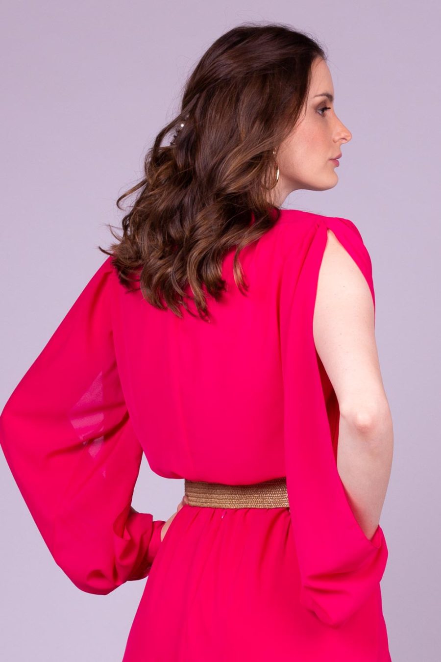 Composição: Crepe 84% Poliéster e 16% Viscose e forro de cetim 97% Poliéster e 3% Elastano.