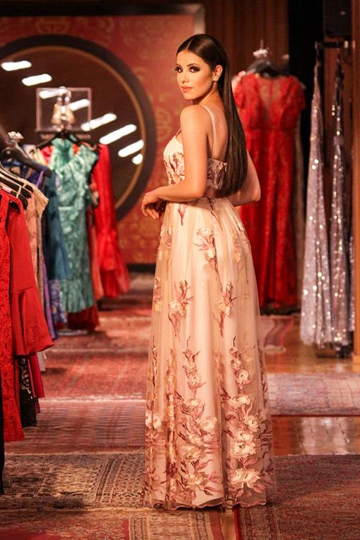 O vestido de Festa Flower Girl é um modelo longo estilo romântico. Todo em tule bordado na cor rosê, com alças e decote princesa. Possui cinto que deixa a cintura marcada, bem feminina e graciosa.