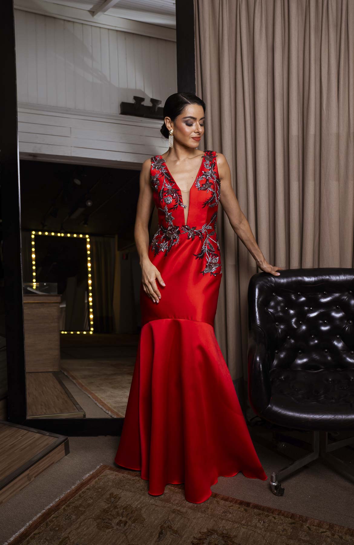 O Vestido de Festa Vermelho Lika Werneck traduz sofisticação em um vermelho intenso, ideal para ocasiões formais e marcantes.