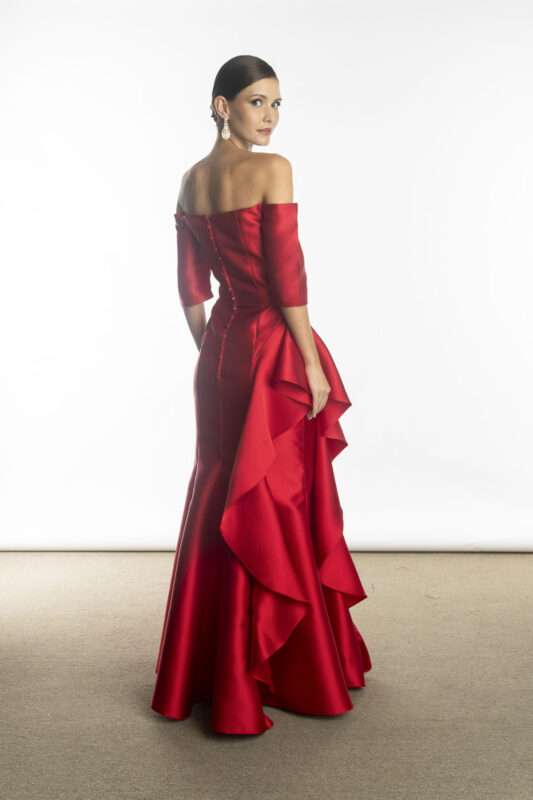 O Vestido de Gala Vermelho Patty Piva combina elegância clássica com um toque contemporâneo de sofisticação. Em um tom vermelho vibrante que transmite presença e emoção, o modelo é confeccionado em tecido liso com acabamento refinado, destacando o corte limpo e a construção impecável da peça. O decote ombro a ombro emoldura o colo com delicadeza, enquanto as mangas 3/4 trazem equilíbrio e elegância atemporal, tornando o vestido ideal para eventos que exigem um visual marcante e de extremo bom gosto.