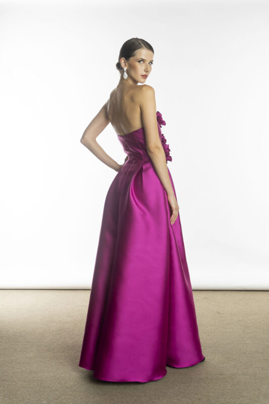 Exemplo perfeito dessa estética é o Vestido de Festa Fúcsia Gigi, uma peça que celebra a feminilidade com imponência e refinamento.
